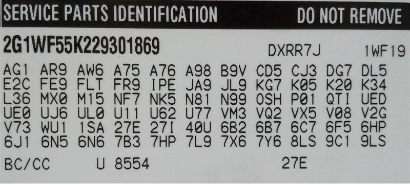 2002 Chevrolet Impala Police (AA0054) Part Out