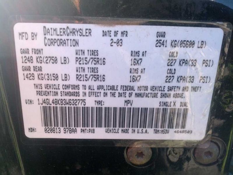 VIN: 1J4GL48K83W632775
