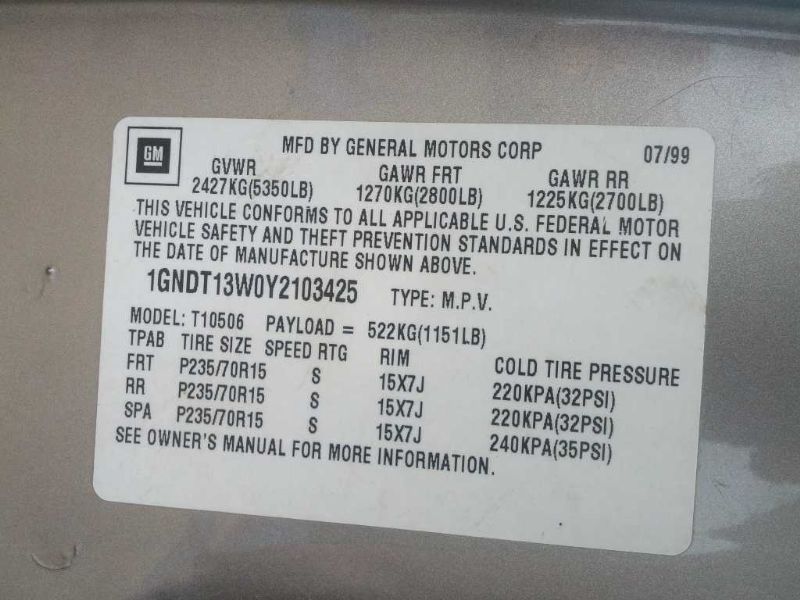 2000 Chevrolet S10 Blazer LS (AA0149) Part Out