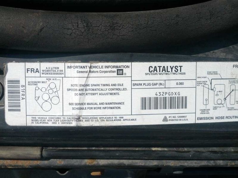 1998 Chevrolet S10 Blazer STD (AA0150) Part Out