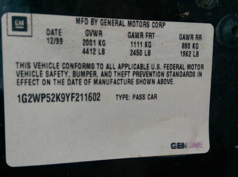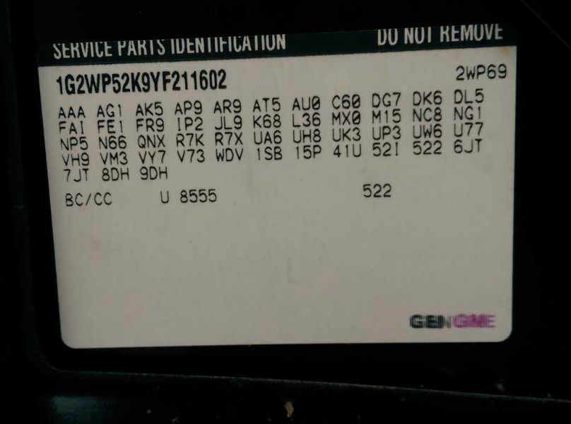 VIN: 1G2WP52K9YF211602