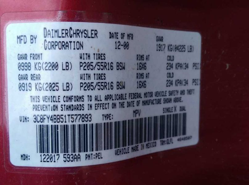 2001 Chrysler PT Cruiser STD (AA0156) Part Out