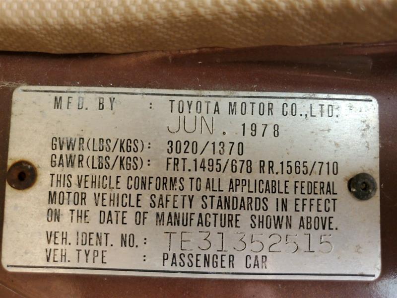1978 Toyota Corolla (AA0158) Part Out
