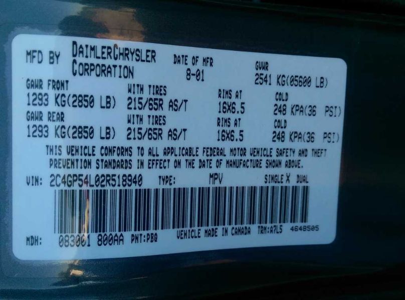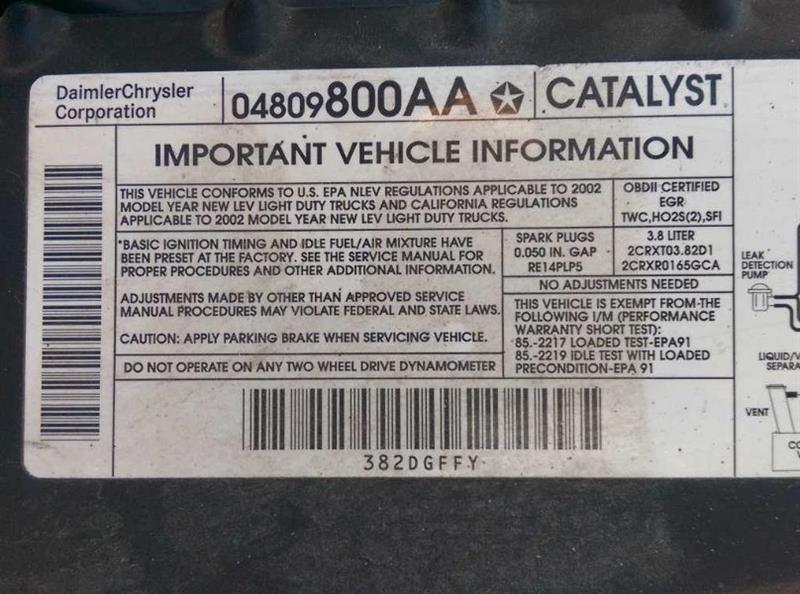 2002 Chrysler Town & Country LXi (AA0167) Part Out