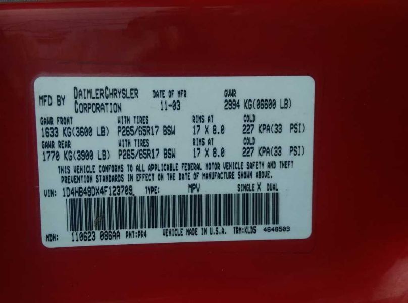 VIN: 1D4HB48DX4F123709