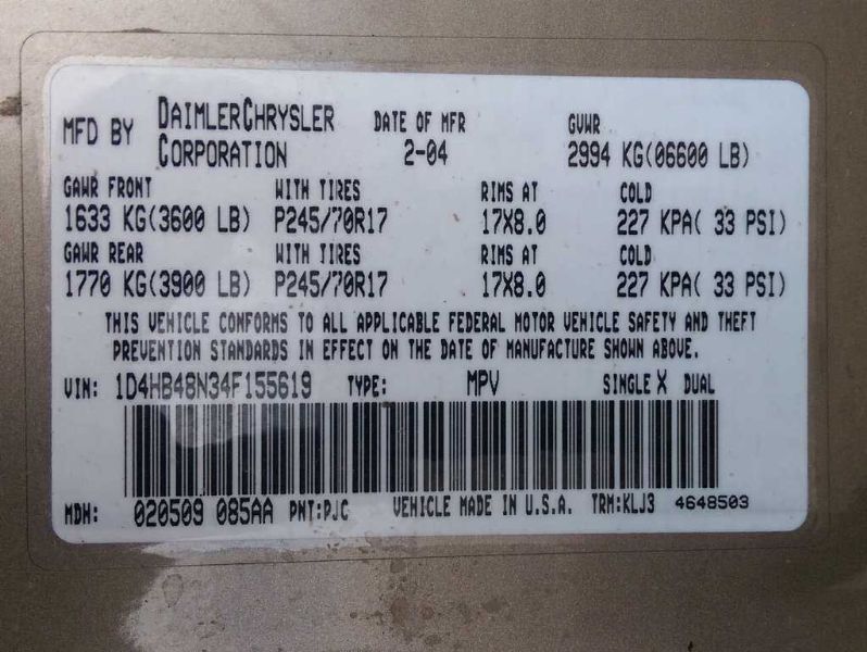 VIN: 1D4HB48N34F155619