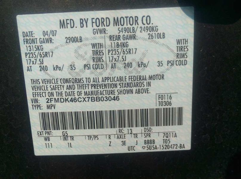 VIN: 2FMDK46CX7BB03046