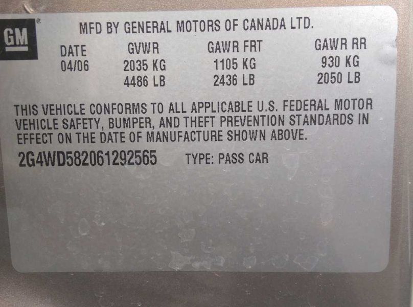 VIN: 2G4WD582061292565