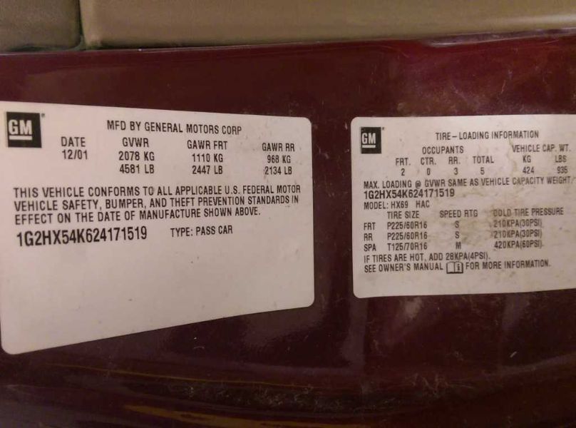 2002 Pontiac Bonneville SE (AA0215) Part Out