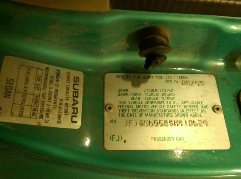 1995 Subaru Impreza LX (AA0218) Part Out