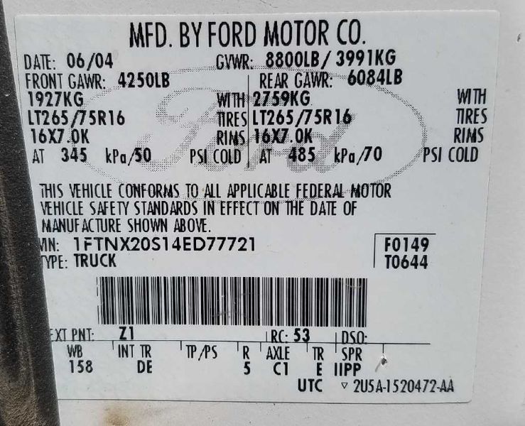 2004 Ford F-250 Super Duty XLT (AA0225) Part Out