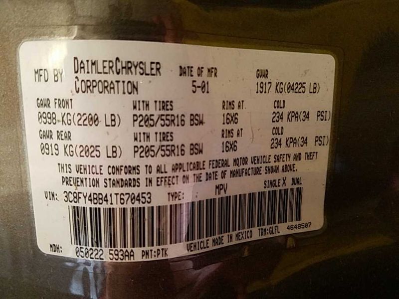 2001 Chrysler PT Cruiser Limited (AA0226) Part Out
