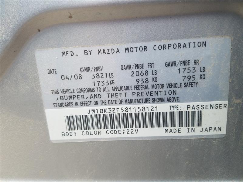2008 Mazda Mazda3 i Touring Value (AA0249) Part Out