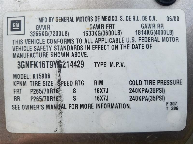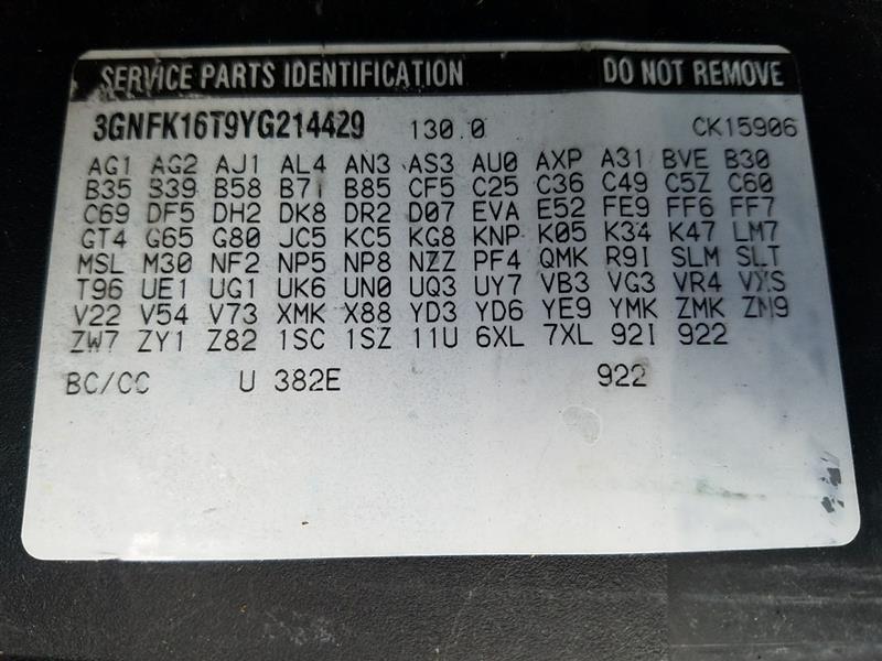 VIN: 3GNFK16T9YG214429