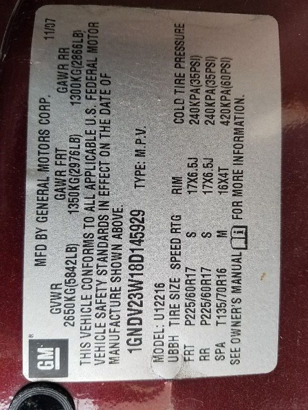 2008 Chevrolet Uplander LS (AA0269) Part Out
