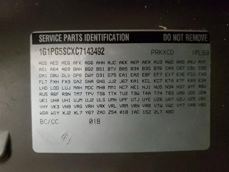 2012 Chevrolet Cruze 2LT (AA0300) Part Out